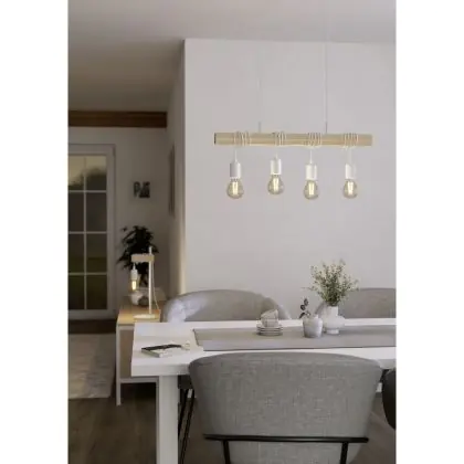 Eglo Pendelleuchte Townshend Stahl Weiß Holz | IP20 - Geeignet für 4x E27