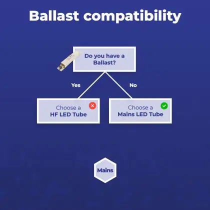 Sie benötigen einen LED-Starter, wenn die Leuchtstofflampen in Ihrer aktuellen Leuchte ebenfalls einen Starter haben. In diesem Fall besitzen Sie eine Leuchte mit einem herkömmlichen Vorschaltgerät (EM). Ein LED-Starter ersetzt Ihren aktuellen Starter und sorgt dafür, dass eine LED-Röhre funktioniert.