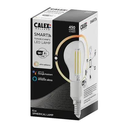 Description Calex Smart Tuya Wifi E14 Boule 4.5W 450lm - 818-830 Accordable Blanc | Dimmable - Remplacement 40W