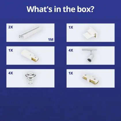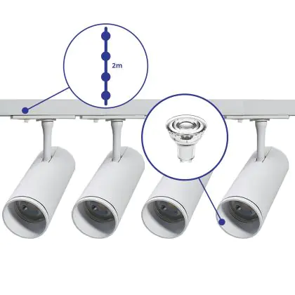 Description Ensemble complet Rail Monophasé Rail 2 Mètre Blanc | incl. 4x Spot + GU10 2700K 3W Dimmable + Embout, Connecteur d’Alimentation et I-Connecteur