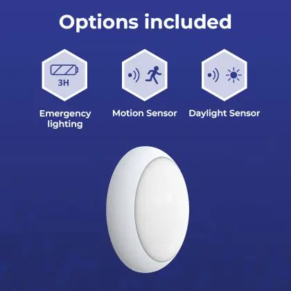 Hublot LED Pro V2 12/16/20W 2400lm - 830-840-865 CCT| 325mm - IP65 - Détecteur de Mouvement et de Lumière - Éclairage De Secours 3 Heures + Cercle Blanc