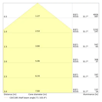 - Angle de diffusion: 100 °