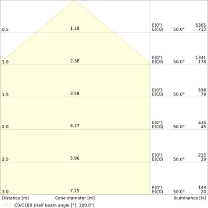 - Angle de diffusion: 100 °