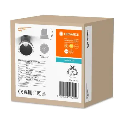 Ledvance Spot LED Twist Pro Aluminium Noir Réflecteur 5W 350lm 30D - 830 | 70mm - Diamètre 65mm - IP20 est un spot LED encastrable. Ce luminaire est conçu pour un éclairage d’accentuation pour un usage domestique ou bien professionnel. LED Intégré, ce spot LED Ledvance en Aluminium a besoin d’une place nécessaire de 65mm de largeur et mm de profondeur. Ce luminaire est compatible avec une ampoule GU10, il est important de faire attention si vous décidez de changer d’ampoule.