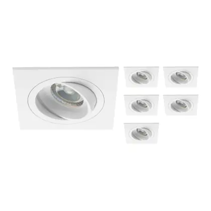 Lot 6x Encastré Spot Boxi MR16 inclinable Blanc | Diamètre 80mm - GU10 Culot est un spot LED encastrable. Ce luminaire est conçu pour un éclairage d’accentuation pour un usage domestique ou bien professionnel. Fixture Retrofit, ce spot LED Budgetlight en Aluminium a besoin d’une place nécessaire de 69mm de largeur et 75mm de profondeur. Ce luminaire est compatible avec une ampoule GU10, il est important de faire attention si vous décidez de changer d’ampoule.
